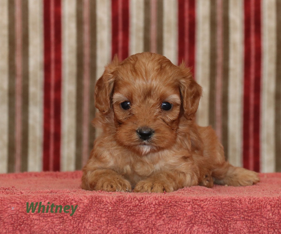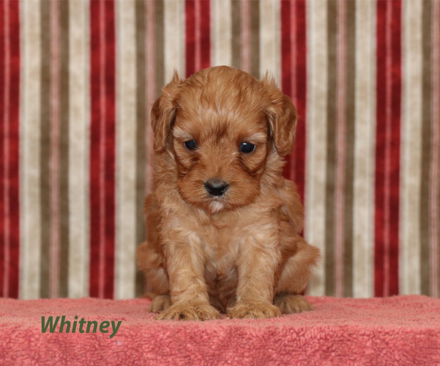 Very pretty, these cavapoos are eye catching! These little pooches have lovely thick coats and have very good hypoallergenic qualities. They are estimated to be around 15-18lbs full grown. They are ready for their forever homes on December 27.